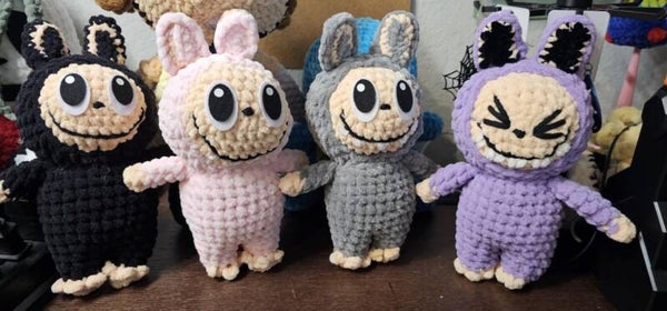 Labubu doll amigurumi, Crochet Fluffy, Large Amigurumi. She is great for anyone as a gift for the holidays or just because.