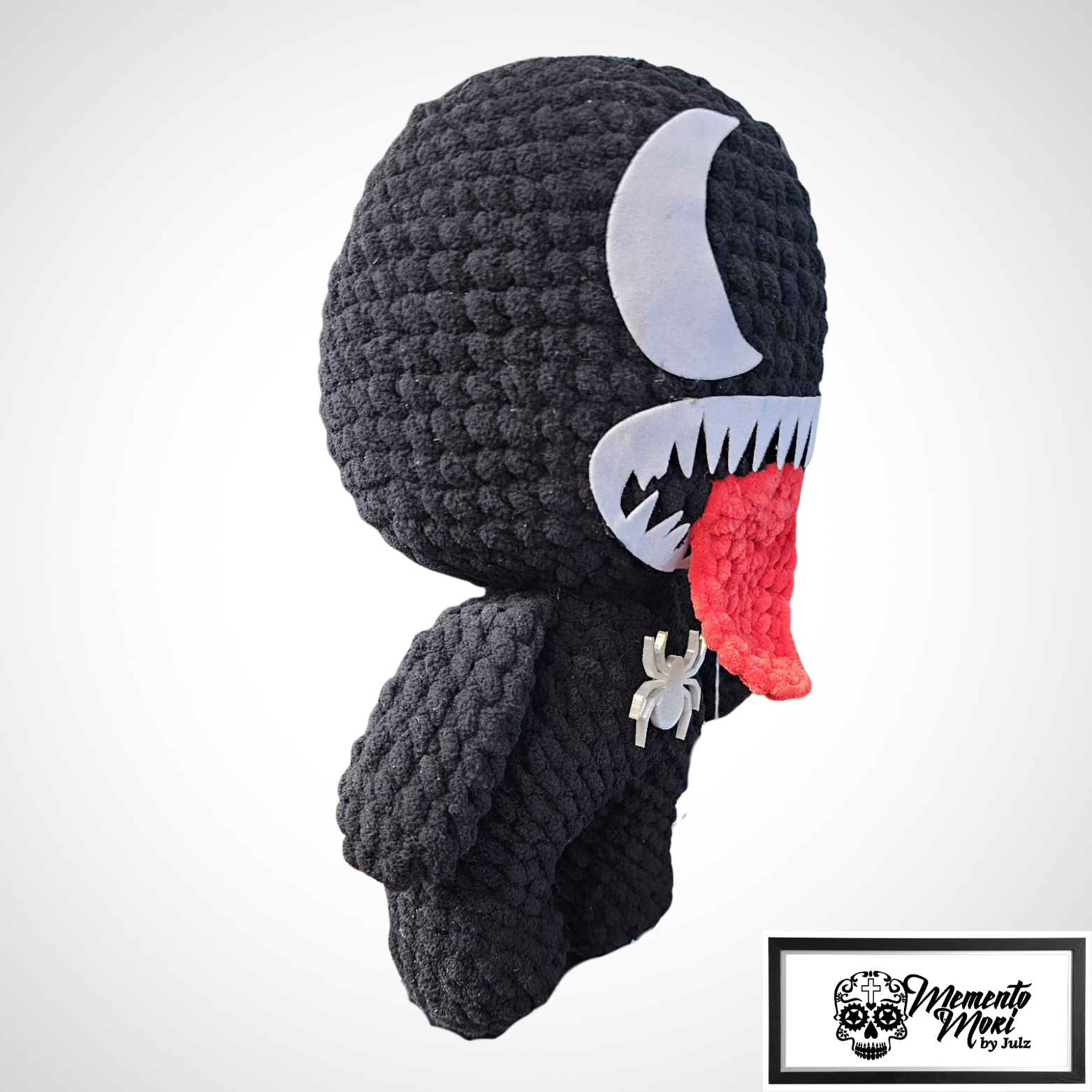 Bring home this unique and menacingly cute Black Symbiote Amigurumi. Hand-stitched with love and incredibly soft, chunky yarn, this creature is the perfect addition to any fan's collection, display shelf, or desk.
